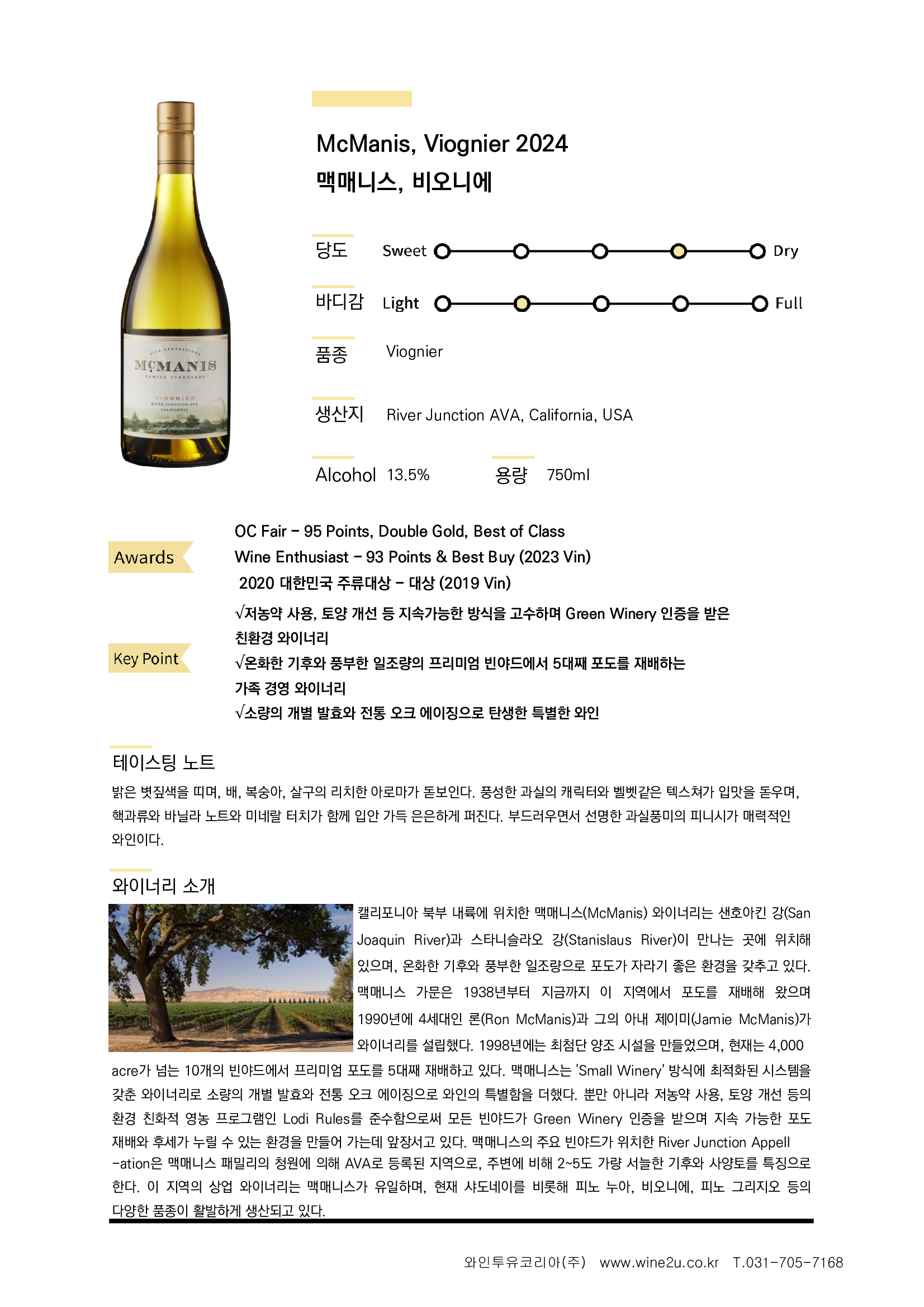 McManis Viognier 맥매니스 비오니에