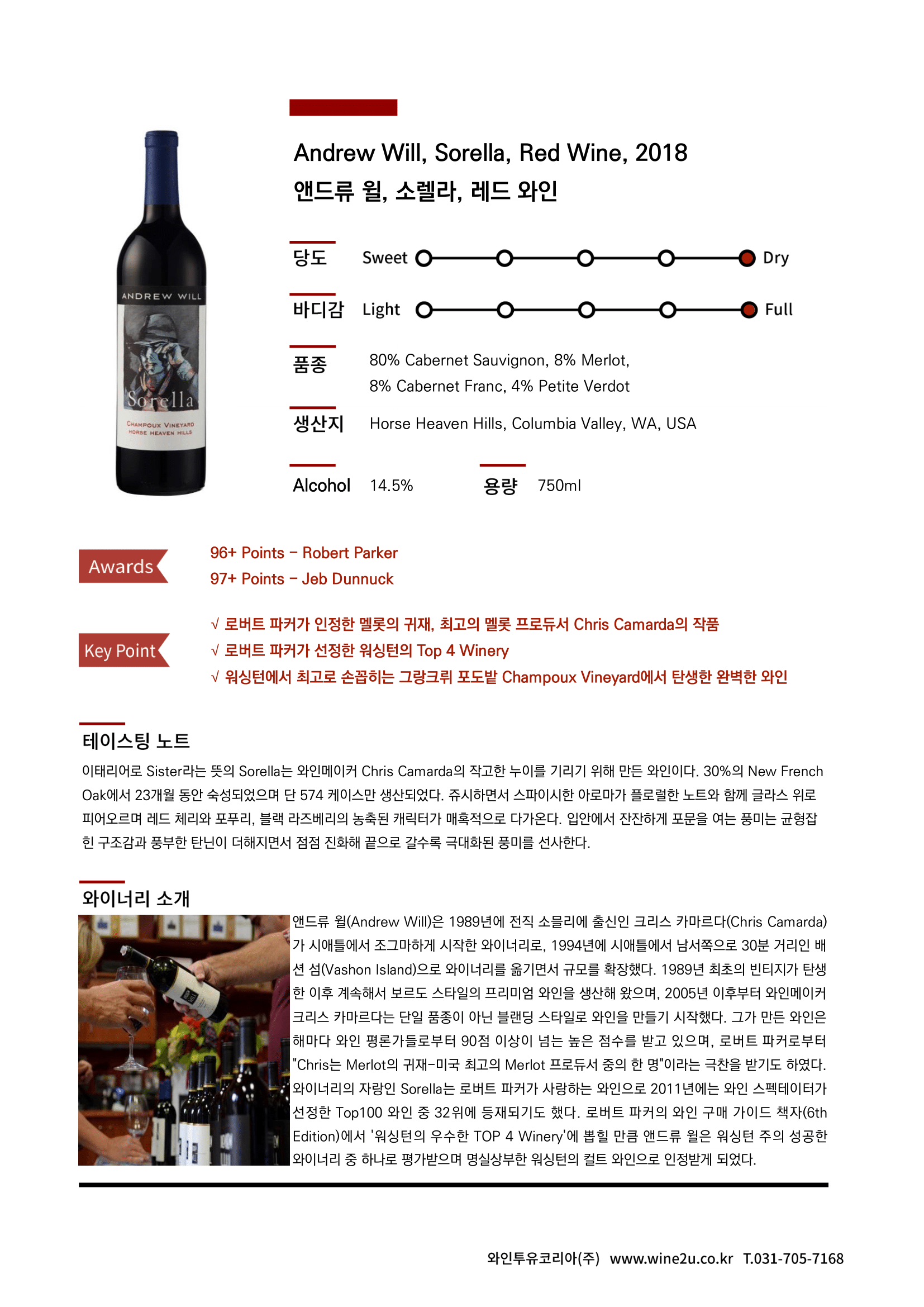Andrew Will Sorella Red Wine 앤드류 윌 소렐라 레드 와인
