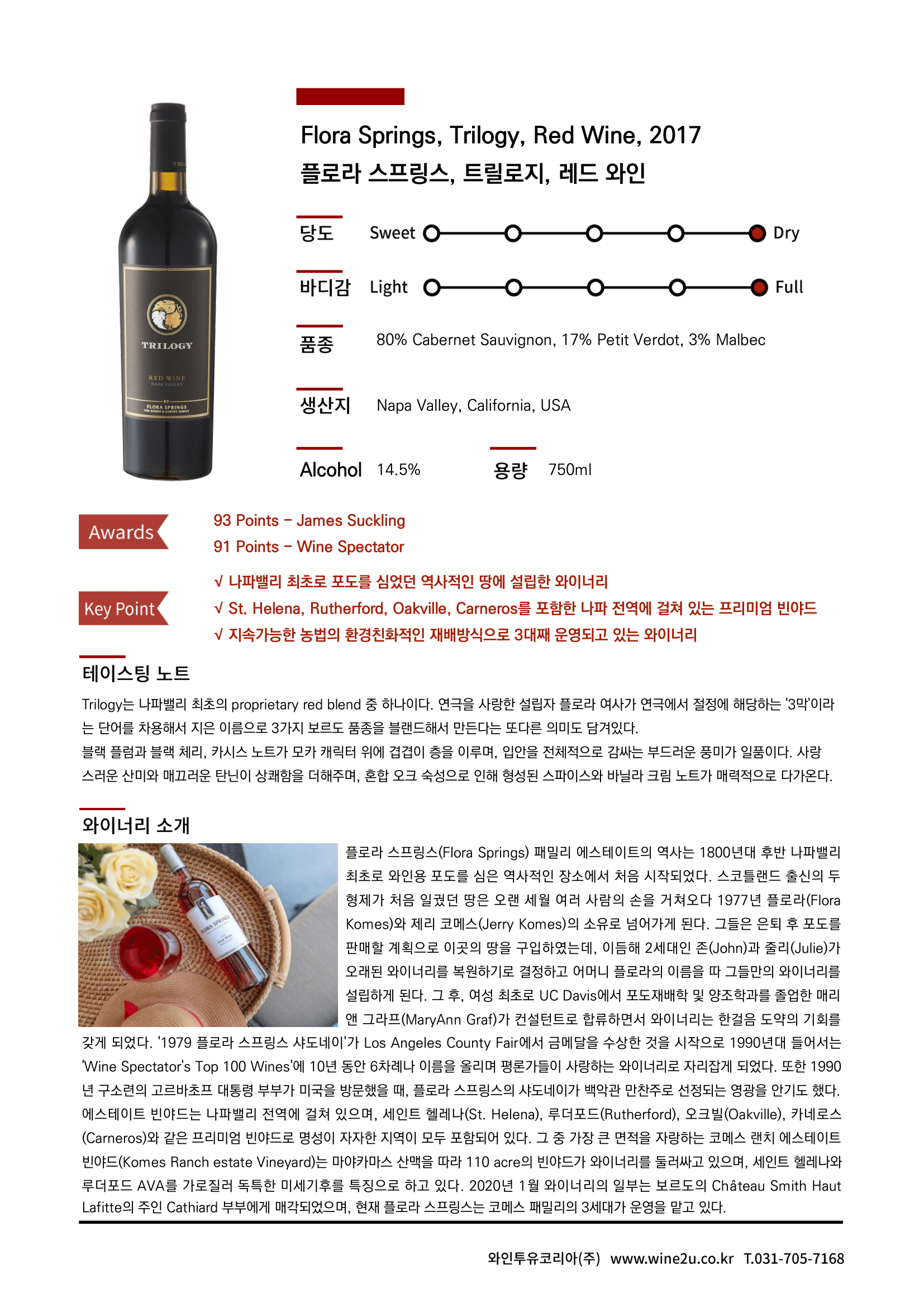 Trilogy는 나파밸리 최초의 proprietary red blend 중 하나이다.